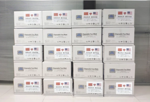 2020年4月10日,球盟会医药向马来西亚政府和医药机构捐赠30000只一次性口罩,以应对该国新冠肺炎疫情。